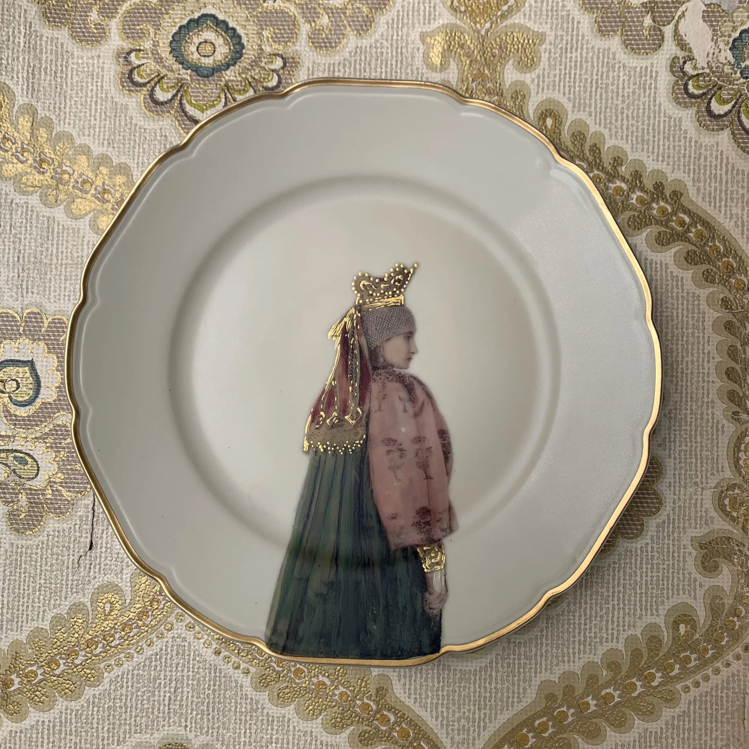 Vintage sierbord gedecoreerd met afbeelding en porseleinverf. Inclusief bordenhanger.