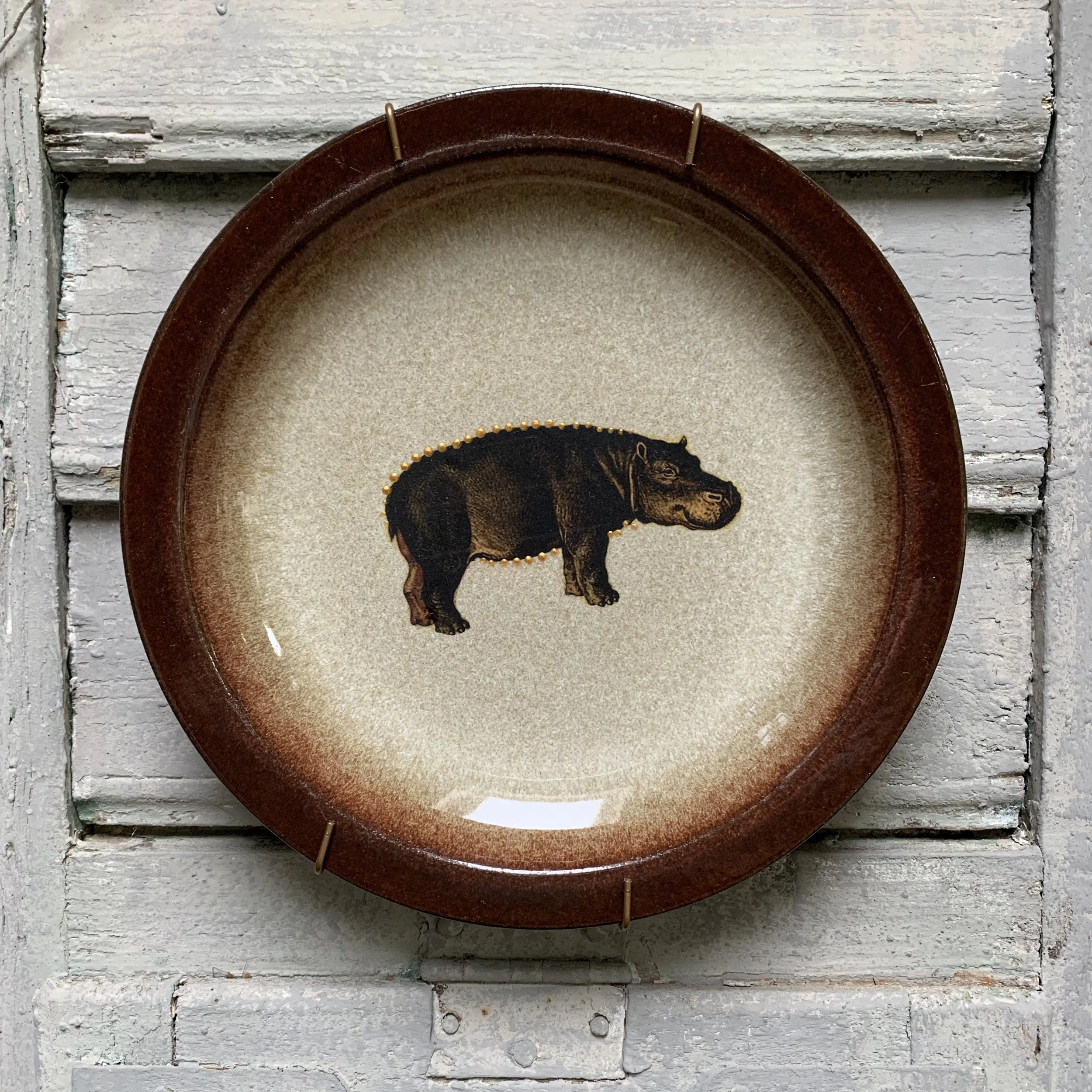 Vintage bord gedecoreerd met afbeelding en porseleinverf. Inclusief bordenhanger.